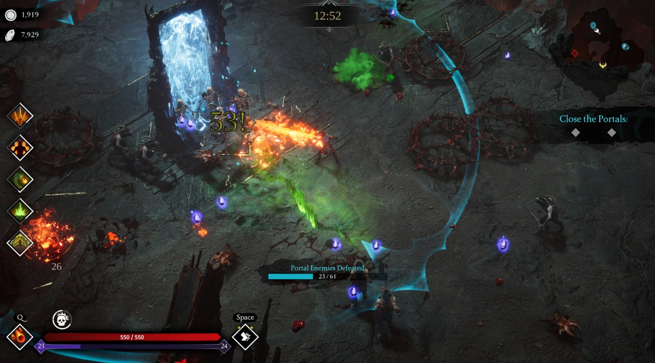 - Fast-paced arena survival with roguelike elements