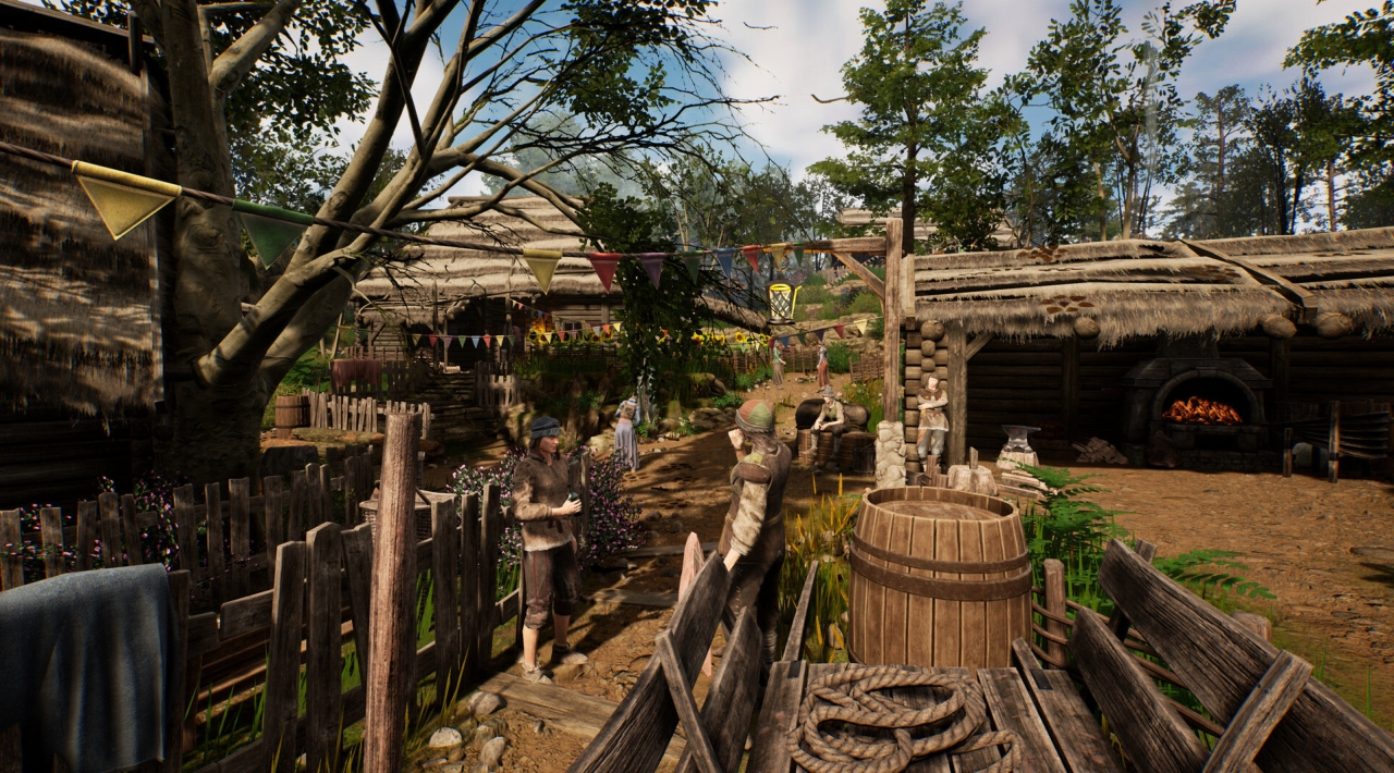 The skill tree is split into survival, crafting and warfare. You grow slowly at first, but NPCs actually notice. Early on some characters look down on you. Later they nod like you finally earned your place. It’s subtle but satisfying.