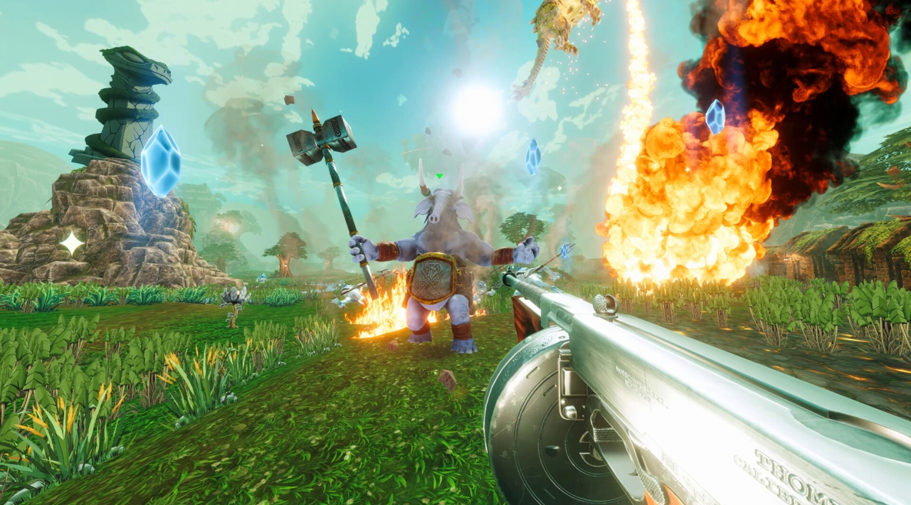 You play as Aryx, a fearless fox freedom fighter. You’re not walking into battle alone either. You ride a supersonic battle turtle (yes, really), and you’re joined by Brian, a tiny but wise bear with a jetpack. It’s a weird trio in the best way: you, your mount, and your jetpack buddy, staring down an evil overlord and a demon army that decided Sky World looked easy to take.